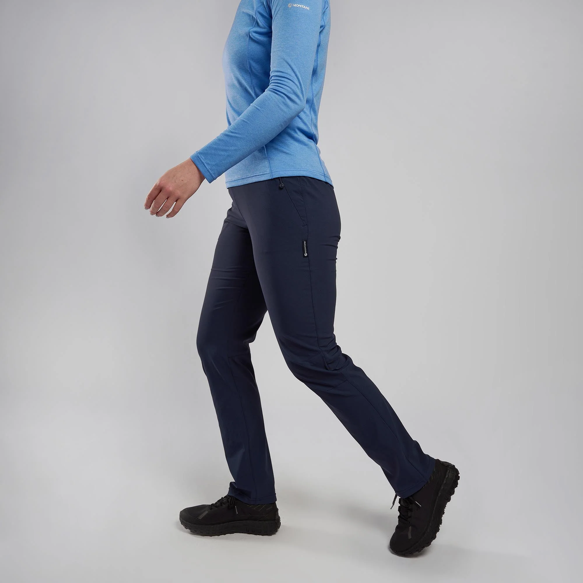 The Montane Women's Tucana Lite Stretch Pants have been designed using a lightweight four way stretch fabric with a deep stretch comfortable to wear waistband and articulated knees offering unrestricted movement with two zipped hand and rear pockets to keep essentials secure. Constructed using Granite Stretch Lite fabric which offers wind resistance the and environmental benefits of PFC free DWR. A great multi activity women’s pant that will get you through your hardest uphill strides.